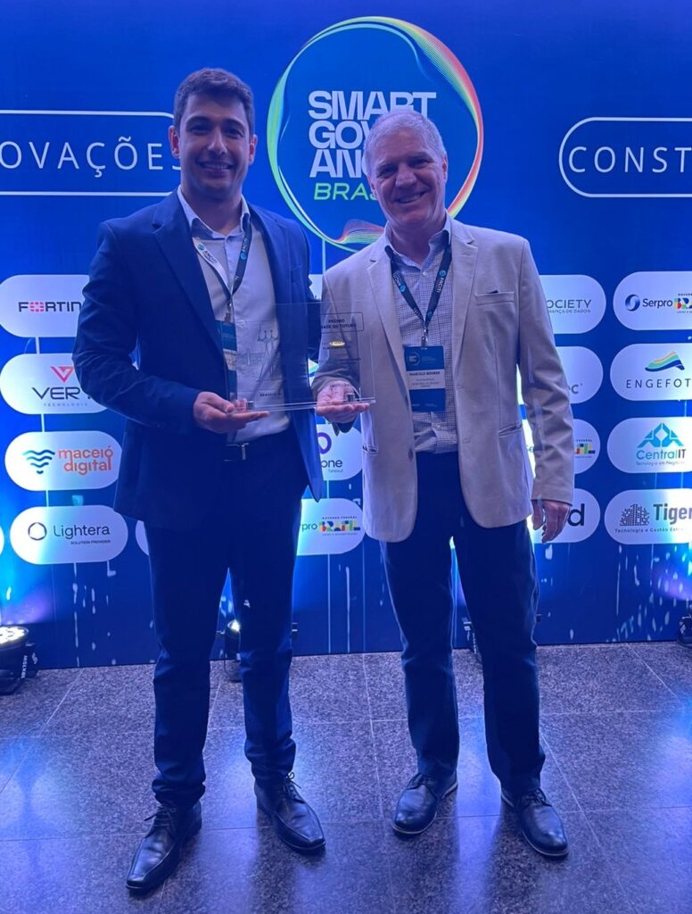 Kaliu Teixeira, subsecretário de Planejamento e Inteligência Urbana, e Marcelo Guaraldi Bohrer, adjunto da Secretaria de Planejamento, Habitação e Desenvolvimento Urbano, receberam, nesta quarta-feira (30), em Brasília, o prêmio Cidade do Futuro, concedido pela Associação Nacional de Cidades Inteligentes, Tecnológicas e Inovadoras (ANCITI). Eles representaram o município de Florianópolis pela implantação do programa “GeoFloripa: eficiência em geoinformação pública”, sistema de gestão territorial, baseado em mapas digitais, que desburocratiza processos.