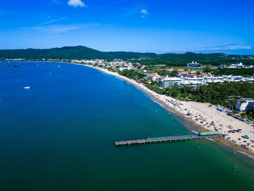 Canasvieiras, no Norte da Ilha de SC, a praia preferida dos turistas argentinos. Foto: Allan Carvalho, drone, divulgação
