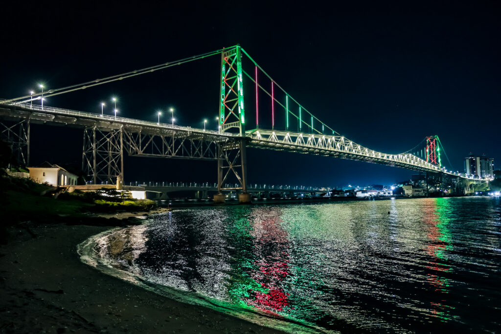 A Secretaria de Estado da Infraestrutura começou a testar a obra da iluminação cênica da ponte Hercílio Luz, que devem ficar prontas até 3 de setembro. No primeiro teste, em 18 de junho, foi acionada apenas uma parte das luminárias, projetores e pontos de LED RGB. O número de equipamentos instalados até agora é inferior a 20% do total previsto. De acordo com a secretaria, o objetivo é modernizar sem descaracterizar o principal cartão postal do Estado.