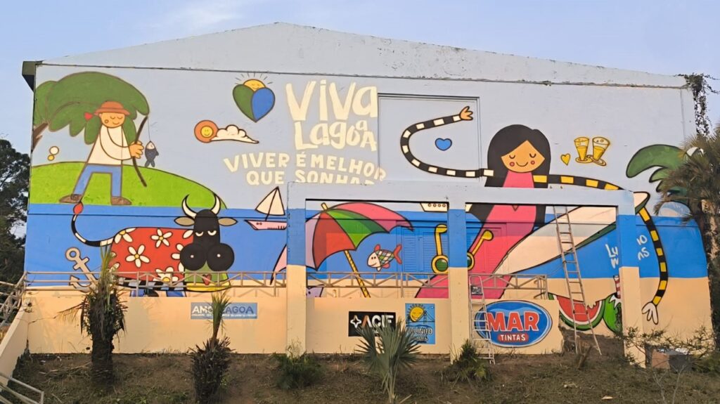 A Associação Empresarial de Florianópolis (Acif) e empreendedores locais estão liderando iniciativas para transformar espaços públicos e contribuir para a revitalização da Lagoa da Conceição. Um dos projetos é “Lagoa, Música e Arte”, liderado pelo empresário João Damian, que foca na revitalização de espaços abandonados por meio de painéis de artísticos. Criado pelo artista plástico Marcelo Félix, o primeiro mural foi ntregue à comunidade no mês passado. A obra, próxima ao Mirante da Lagoa, foi inspirada no trabalho de Luciano Martins. Foto: divulgação