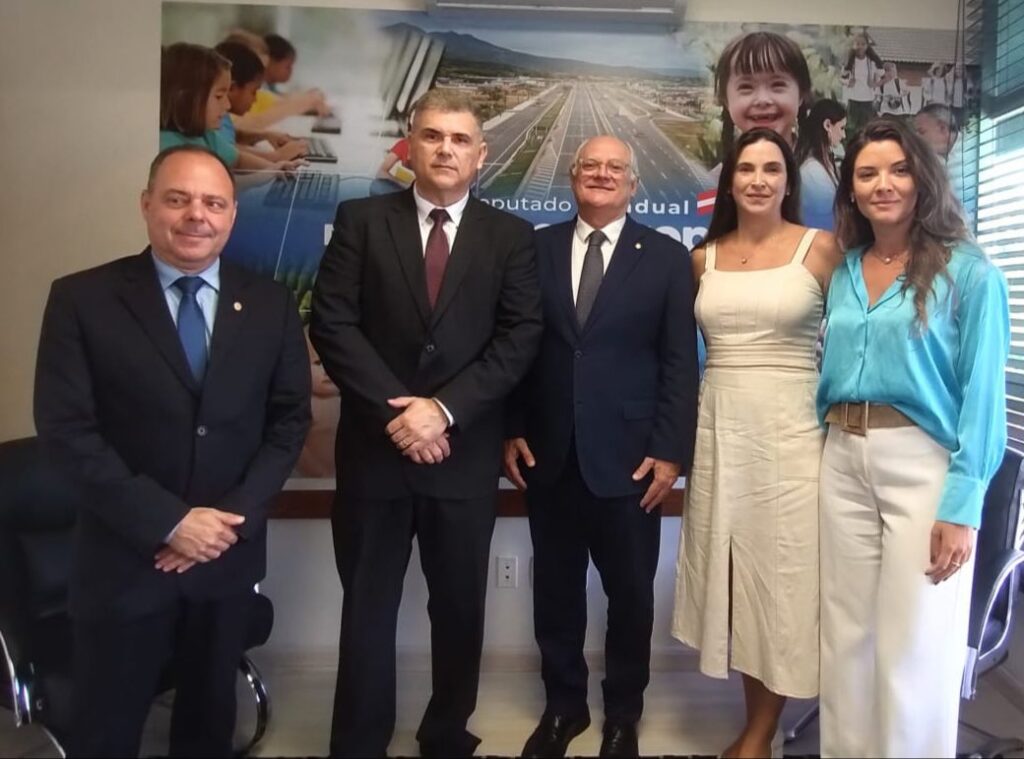Na foto acima, Juliano Pereima (1º vice-presidente), Marcelo Reis (presidente), deputado Vicente Caropreso, Andrea Ferreira (2ª vice-presidente) e Mariah Martins (assessora jurídica do CRM-SC)