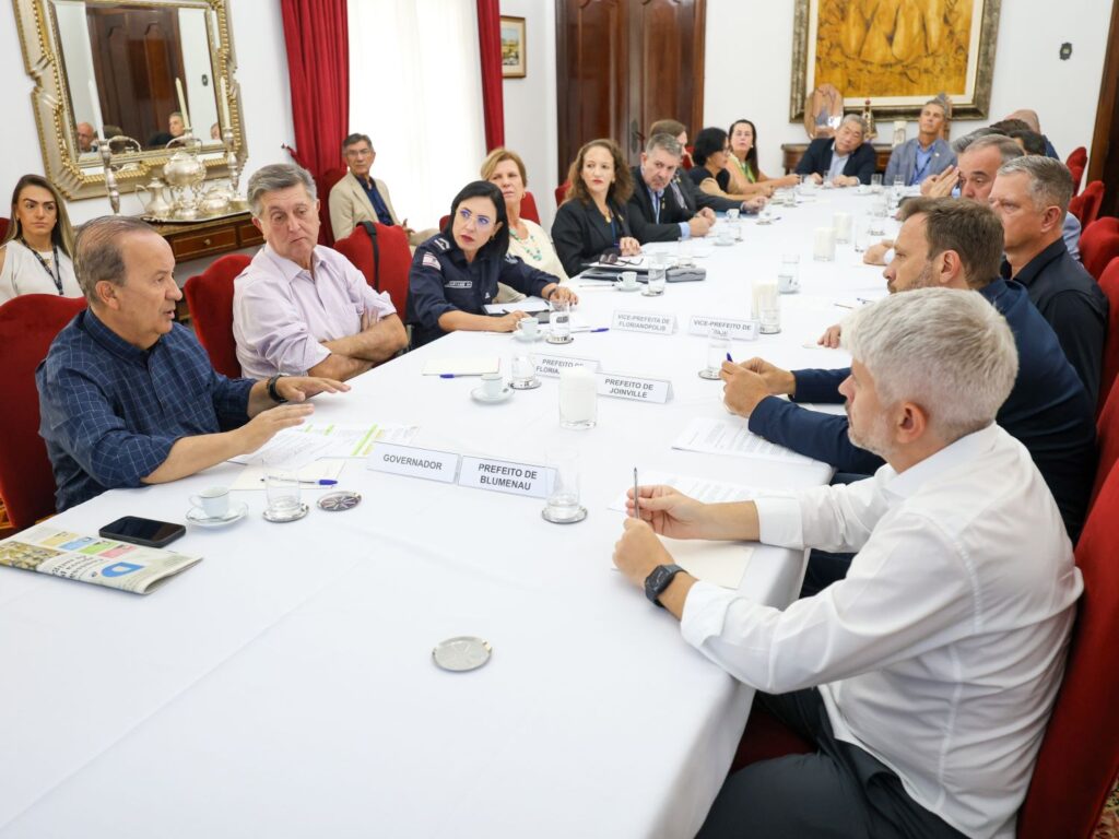 O governador Jorginho Mello se reuniu nesta terça-feira, 1º de abril, com representantes da Federação Catarinense de Municípios (Fecam) e prefeitos de Florianópolis, Joinville, Blumenau e Itajaí para debater soluções voltadas ao atendimento da população em situação de rua em Santa Catarina. Também participaram do encontro o secretário de Estado da Casa Civil, Kennedy Nunes, o secretário de Estado da Segurança Pública, Flávio Graff e o secretário de Estado da Saúde, Diogo Demarchi Silva.