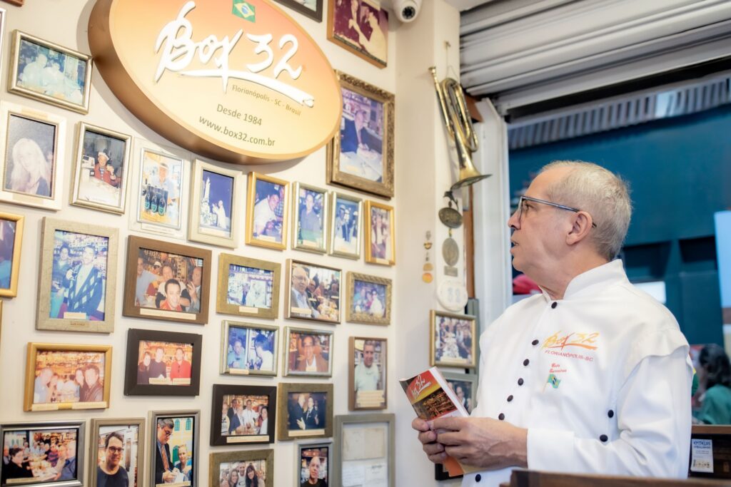 Point gastronômico e grife internacional de Florianópolis, o Box 32 está completando 40 anos de operação no Mercado Público. Nessas quatro décadas, vem atraindo moradores, turistas e personalidades nacionais e estrangeiras. À frente desse “fenômeno mercadológico”, como já disse o publicitário Washington Olivetto, está o empresário Beto Barreiros.