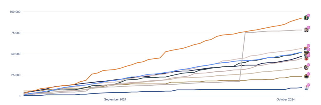 Agora, uma curiosidade: o gráfico de evolução de engajamento revela um crescimento abrupto de João Padilha na reta final da campanha. Mas antes que você se impressione, lembre-se: no dia 24 de setembro, ele contou com a presença de Nikolas Ferreira e Ana Campagnolo em suas redes, dois ícones da direita, o que impulsionou seu desempenho digital.
