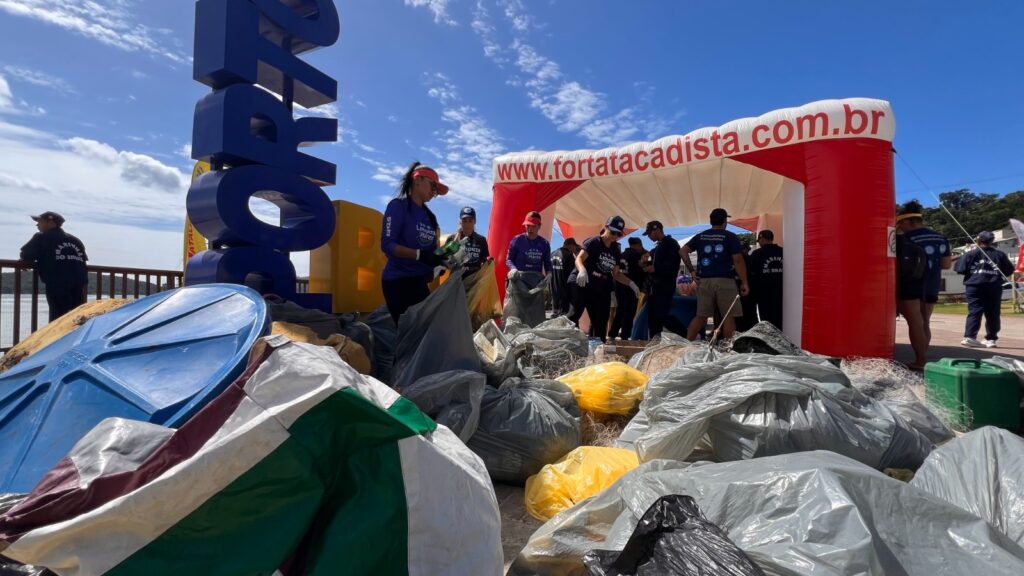 Na segunda etapa de 2025, o Projeto Limpeza dos Mares retirou 1.872 toneladas de resíduos sólidos da Praia do Centro, do Costão das Vieiras e do Caixa D’Aço, em Porto Belo. A ação, realizada no sábado (5), mobilizou cerca de 200 voluntários. Foram recolhidos, entre outras coisas, restos de redes e material de pesca, bitucas de cigarro, grades e ferros, lonas, garrafas, latas de cerveja e refrigerante, entulhos de construção, isopor, embalagens plásticas variadas, canudos, roupas e sapatos e sacolas plásticas de supermercados. Foto: Mundo Mar, divulgação
