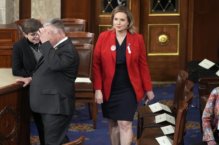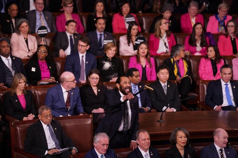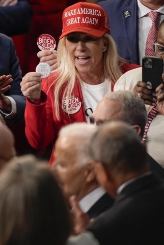 Joe Biden também não passou ileso. Durante discurso do “Union State” em 2024, as republicanas usaram blazers vermelhos e broches escrito “Parem a crise de fronteira de Biden”.