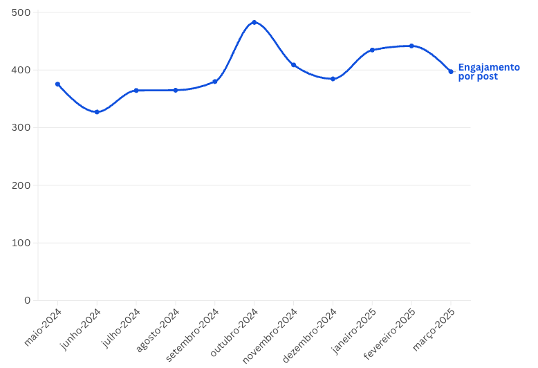 As medianas mensais mostram isso com precisão quase cirúrgica. Em novembro de 2024, o engajamento médio por publicação atinge seu ápice. Coincidência ou não, esse foi o mês em que a Polícia Federal deflagrou a Operação Contragolpe, que culminou no indiciamento do ex-presidente Jair Bolsonaro por tentativa de golpe de Estado. Outubro e novembro também foram marcados pelas eleições municipais, que reacenderam disputas regionais e puxaram o debate político nacional de volta ao centro da atenção.