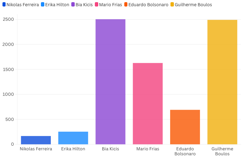 Essa lógica se confirma quando olhamos para os dados anuais. Um dos maiores erros da gestão digital parlamentar é acreditar que mais posts significam mais influência. O caso de Nikolas Ferreira desmonta essa ideia com brutalidade: apenas 167 publicações no período, mas um crescimento de mais de 6 milhões de seguidores e 144 milhões de interações. Em contraste, parlamentares como Bia Kicis e Mario Frias postaram mais de mil vezes no mesmo intervalo — e cresceram menos de 150 mil seguidores cada. O que isso nos diz não é que volume não importa. Mas que, sem conexão com o momento, volume vira ruído. E ruído, na lógica das plataformas, é invisibilidade.