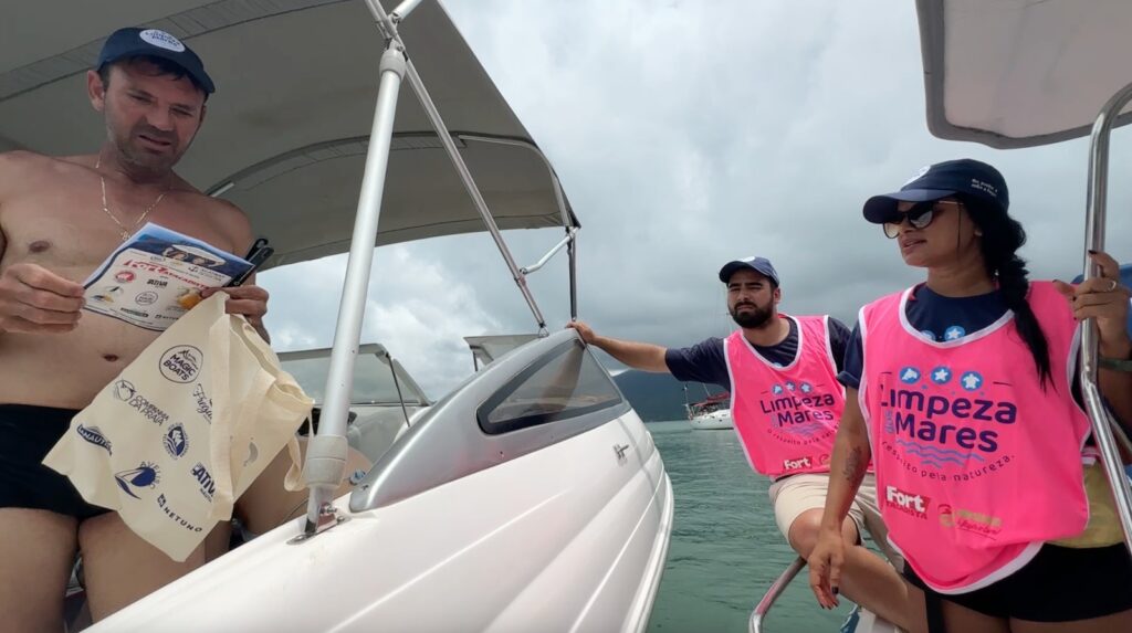 O projeto Limpeza dos Mares fez uma blitz neste final de semana, no Tinguá, em Governador Celso Ramos, reduto de concentração das embarcações na Grande Florianópolis. A ação tem como objetivo conscientizar a população embarcada e os turistas sobre a importância do descarte correto de resíduos e da preservação ambiental. Mais de 100 embarcações foram visitadas e receberam os kits do Limpeza dos Mares com utensílios reciclados do lixo retirado durante estes últimos anos do projeto, a revistinha da Turma do Limpeza, além de bonés, sacolas e toalhas. Realizada pela Associação Náutica Brasileira (Acatmar), Mundo Mar e a Acquanauta, a atividade conta com o patrocínio mantenedor do Fort Atacadista e o apoio oficial de parceiros como Ativa Náutica, Atlântico Despachante, Avelisc, Iate Clube Veleiros da Ilha, Netuno Geradores, Magic Boat, Sanáutica, Freguesia Oyster Bar e Companhia da Praia.