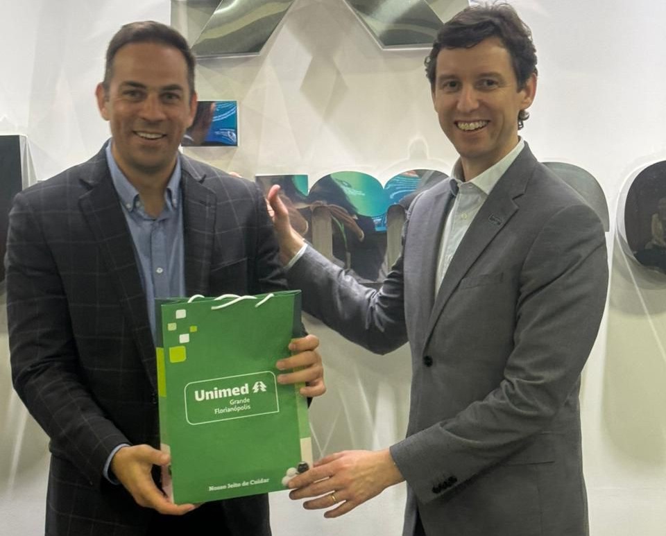 As novas metas de crescimento da Unimed Grande Florianópolis foram apresentadas, nesta segunda-feira (15), pelo presidente Ademar Paes Junior (à direita, na foto) aos dirigentes da Associação Empresarial de Florianópolis, numa ação de aproximação ainda maior com a entidade que reúne as grandes empresas e marcas empreendedoras da capital. A reunião também marca o fortalecimento do ecossistema, em desenvolvimento pela Unimed, que integra saúde, tecnologia e gestão com o objetivo de promover qualidade de vida e prevenção às doenças. Participaram o presidente e vice-presidente da Acif, Célio Antônio Bernardi Júnior (à esquerda) e Thiago Pereira Amorim, além do vice-presidente da cooperativa médica, Alexandre Buffon.